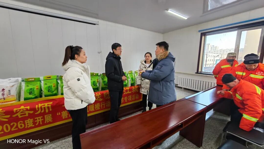 活动得到吉林市老爷岭农业发展有限公司、吉林市爱尔眼科医院两家爱心单位的大力支持。老爷岭农业捐赠优质大米,爱尔眼科医院捐赠眼科体检卡,以实实在在的行动关爱“城市美容师”的身体健康与生活质量。企业的善举,不仅为活动注入了温暖力量,也带动了更多社会力量关注环卫群体、传递城市温情。让这份关爱既有温度,更有厚度。